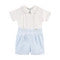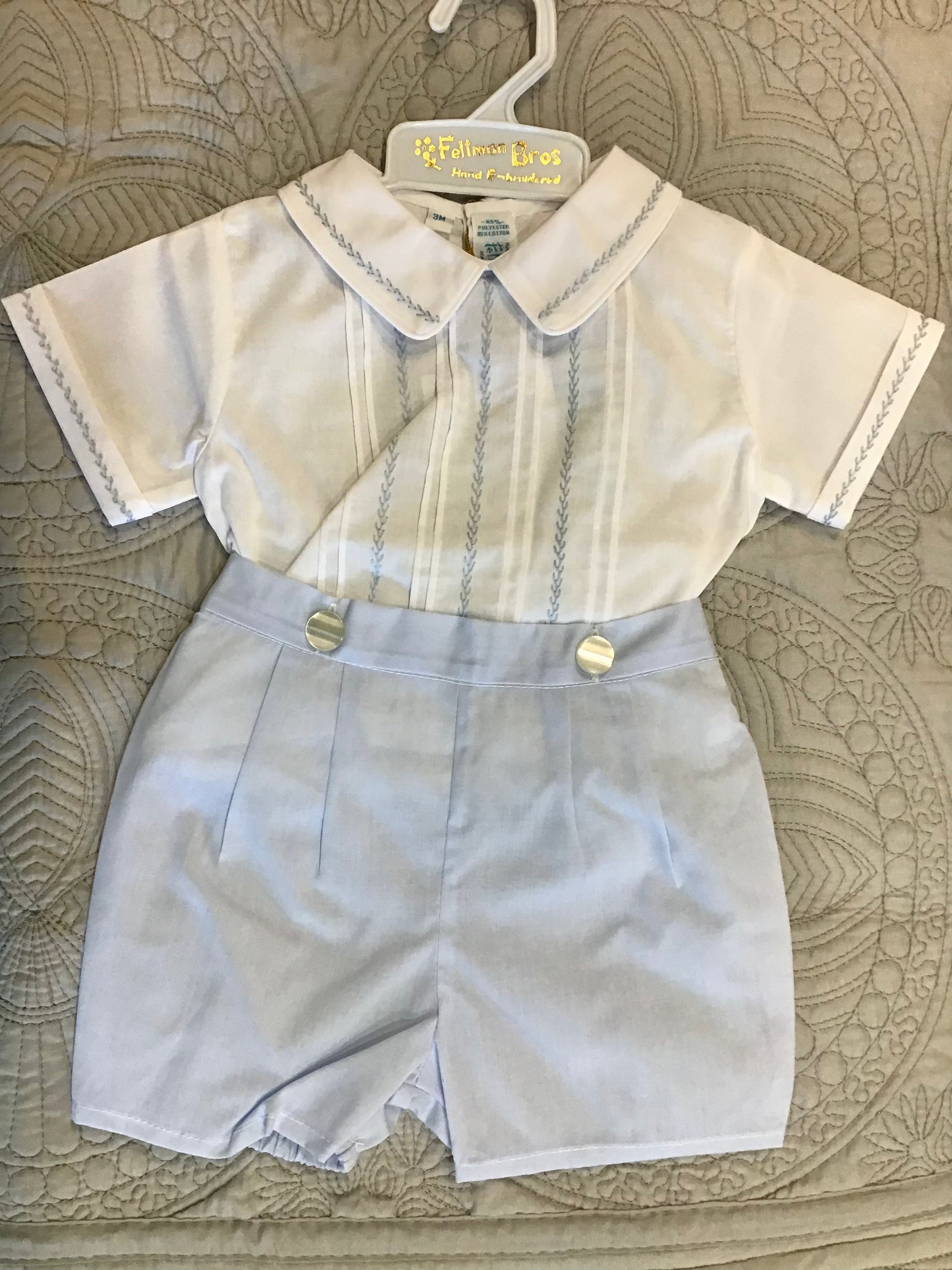 A timeless outfit for your little boy! This vintage style Bobby Suit is classy as can be, with its dainty pintucks, hand-stitched embroidery, and pleated pants. Fall in love with a beautiful heirloom piece that can stay in your family for years to come!