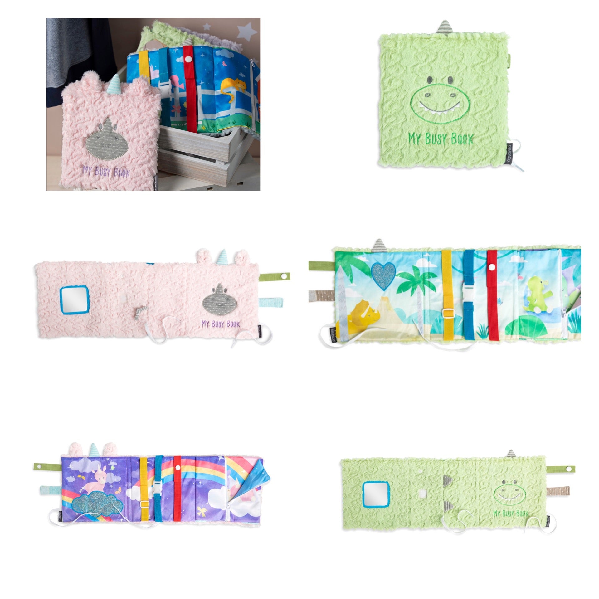 Keep babies 0-12 months entertained with the pink Buckle and Snap Busy Book - Unicorn. With textures, characters and various accessories, this activity book is sure to be a playtime favorite.