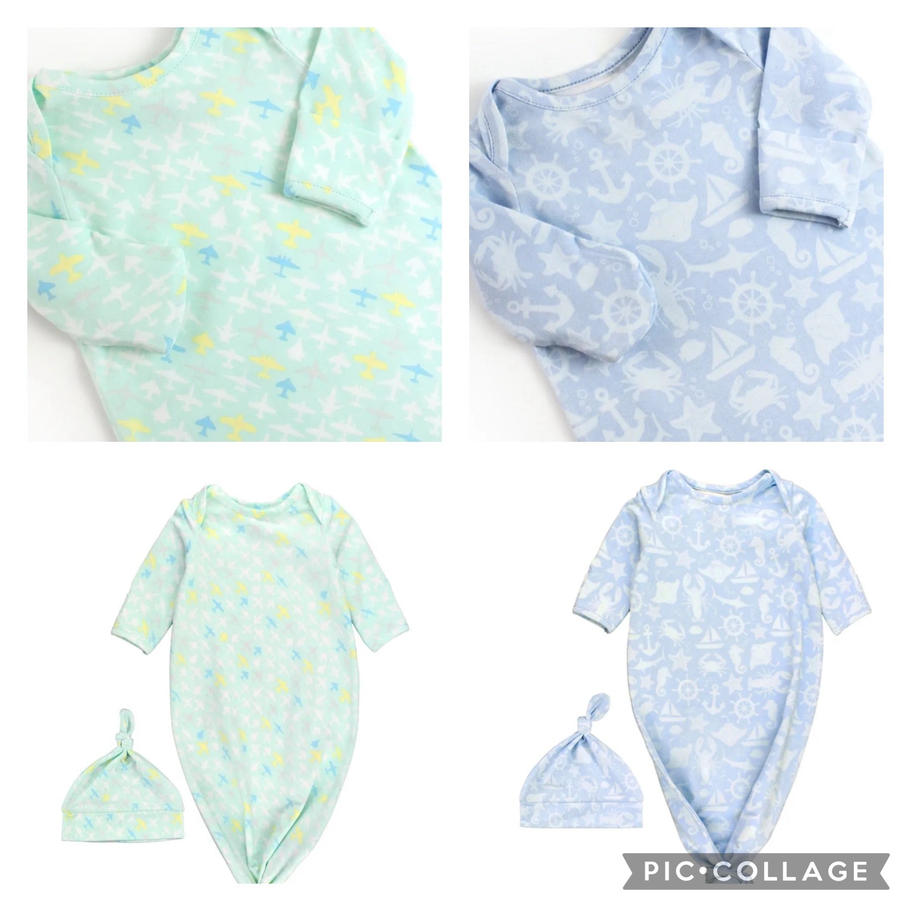 knotted sleep gown and hat sets