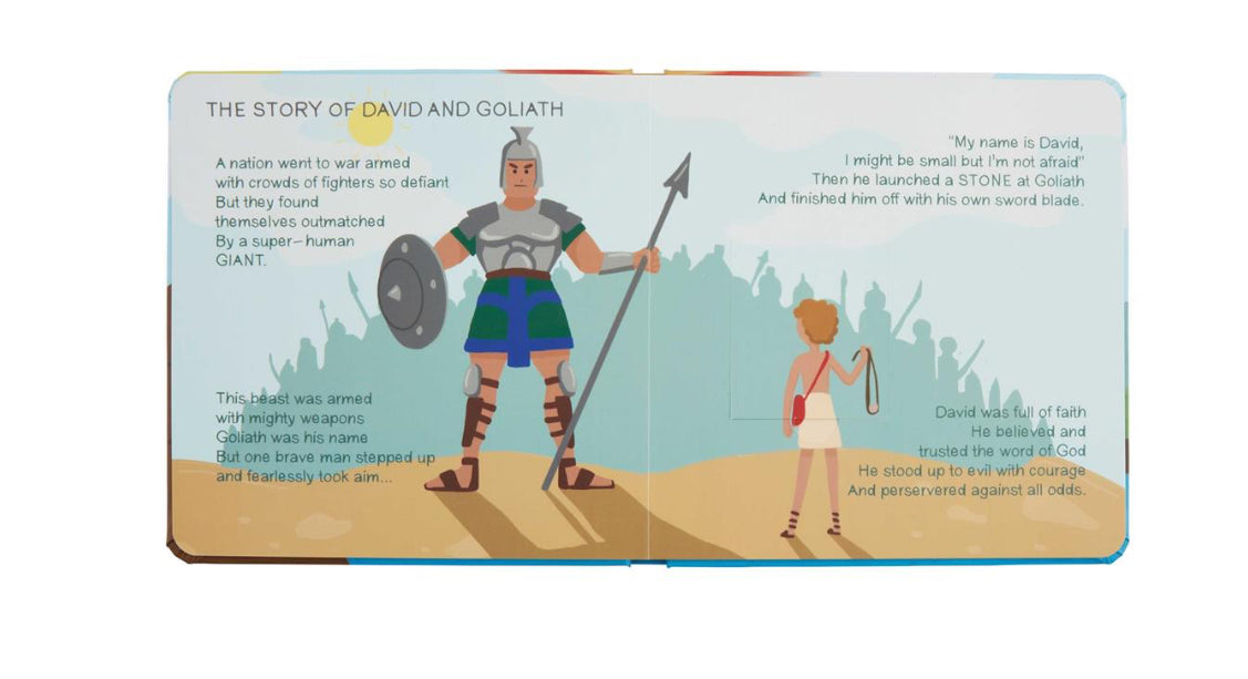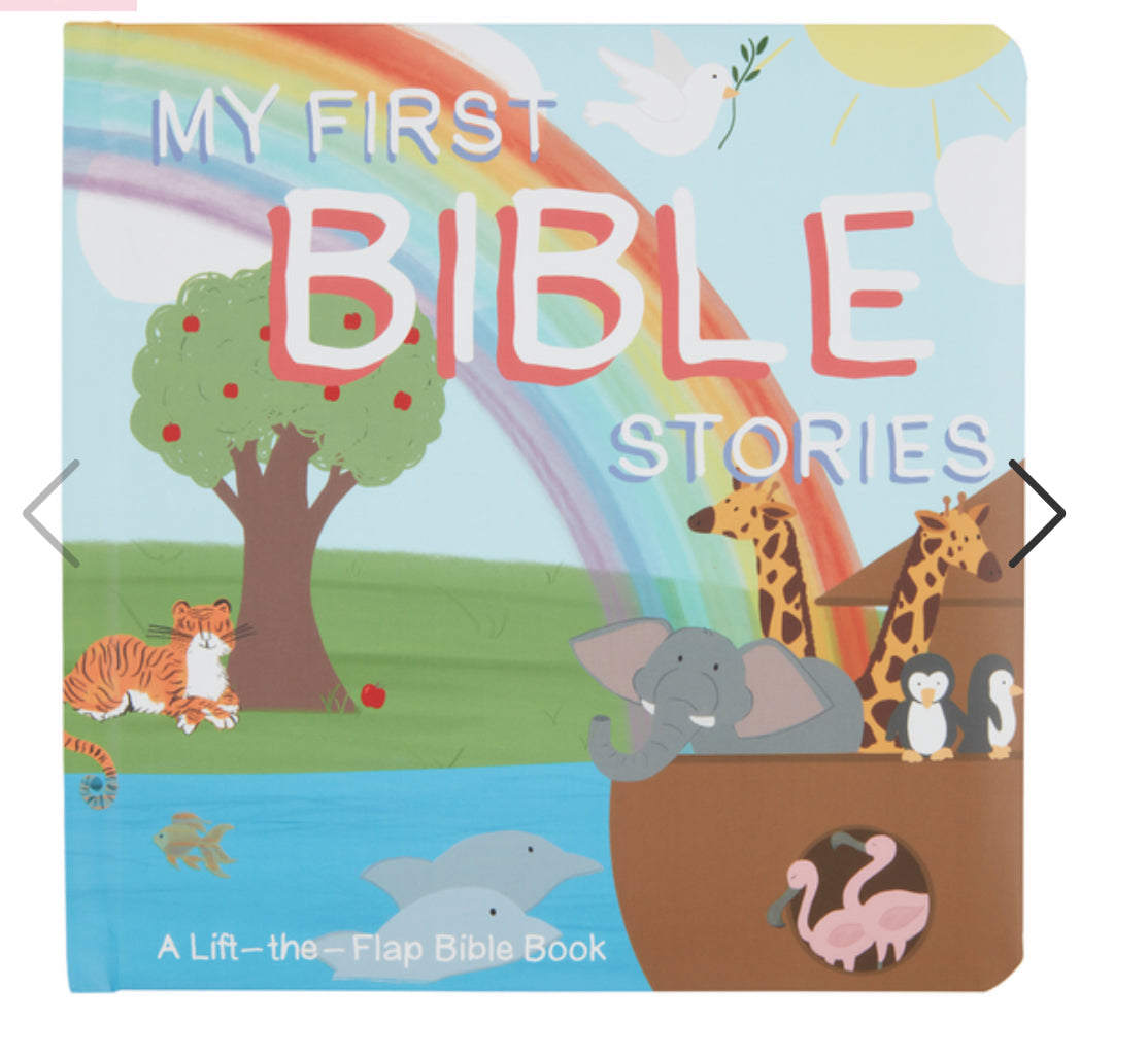 Babies first board book Bible with lift, the flap pages includes stories of Adam and Eve, Noah’s, Ark, Jonah, and the whale and David and Goliath.