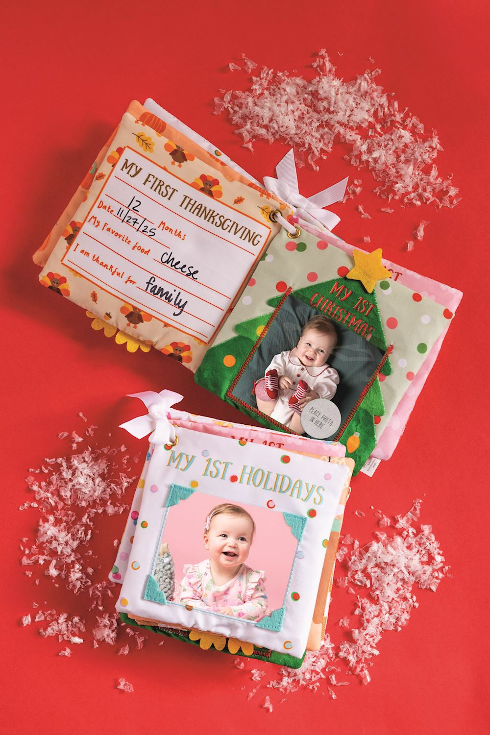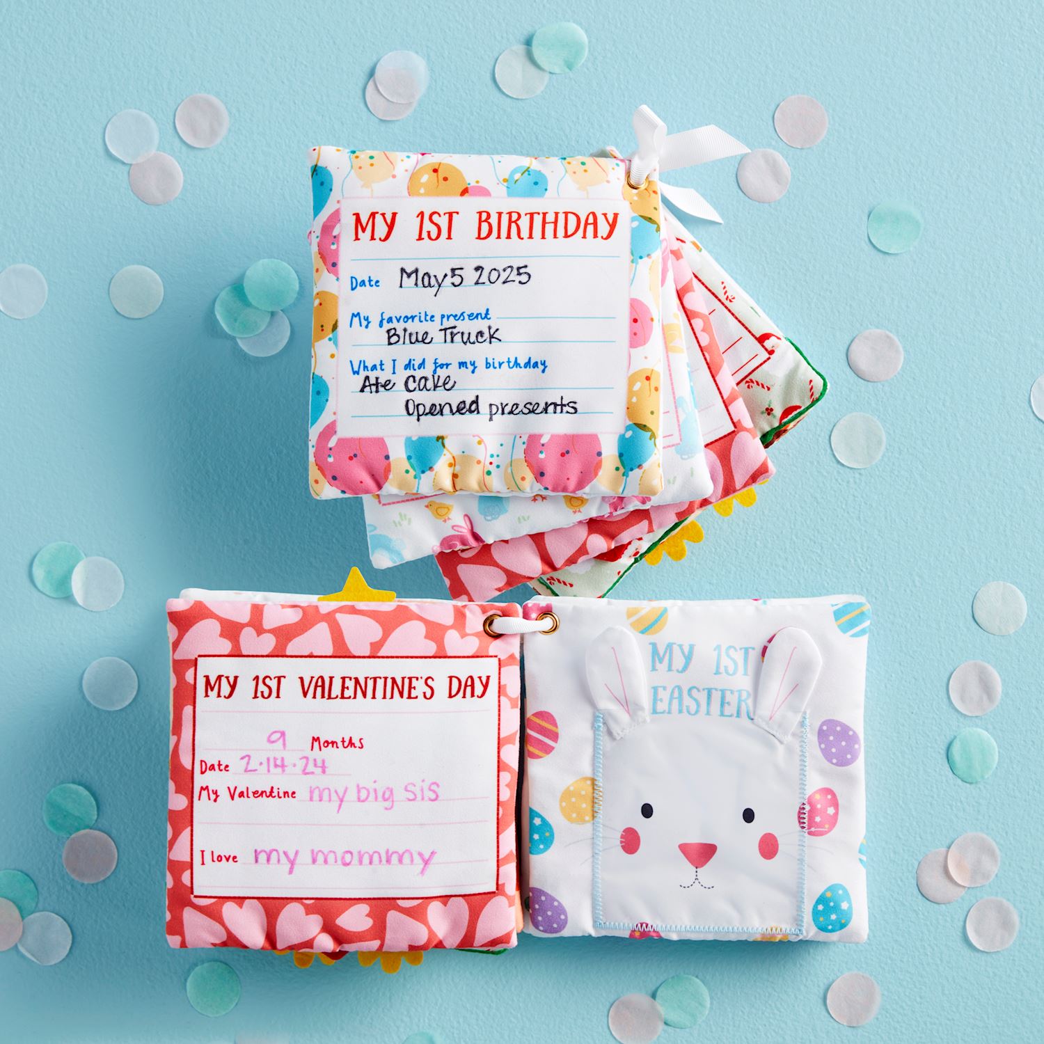 Capture pics of baby's first holidays: Valentine's, Easter, Halloween, Thanksgiving, Christmas and their birthday. Pages untie to be rearranged in order of celebrations depending on birth date.
