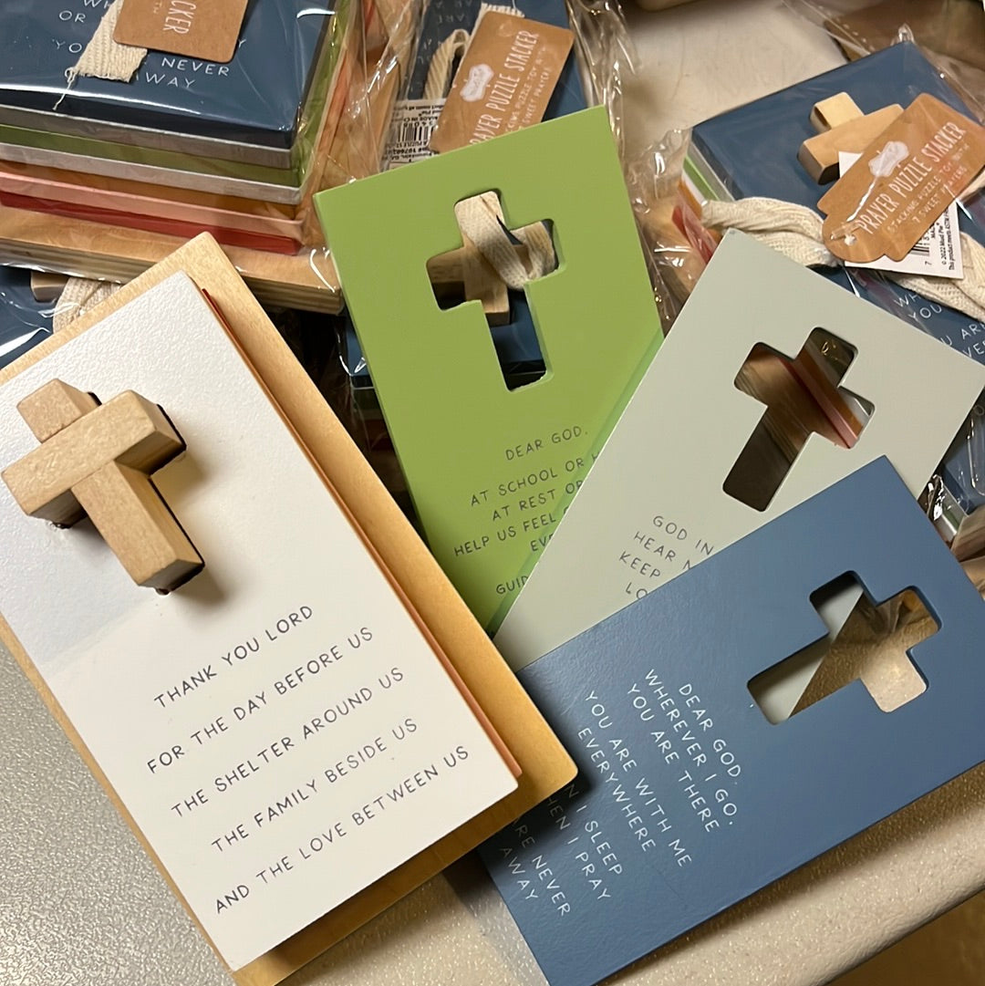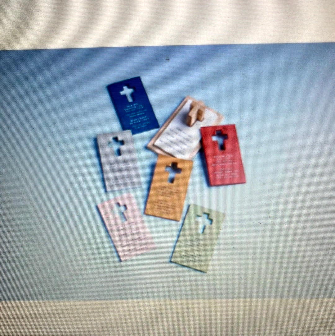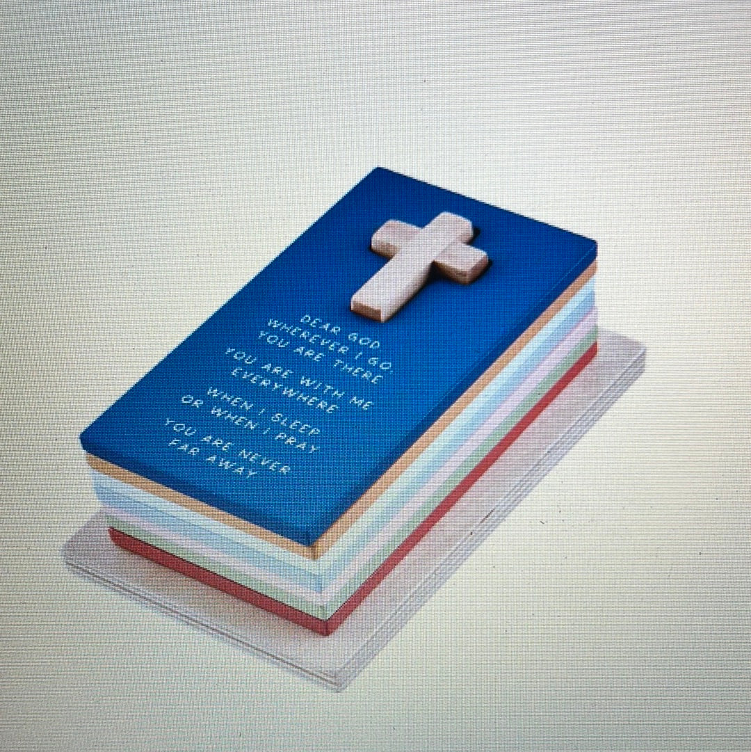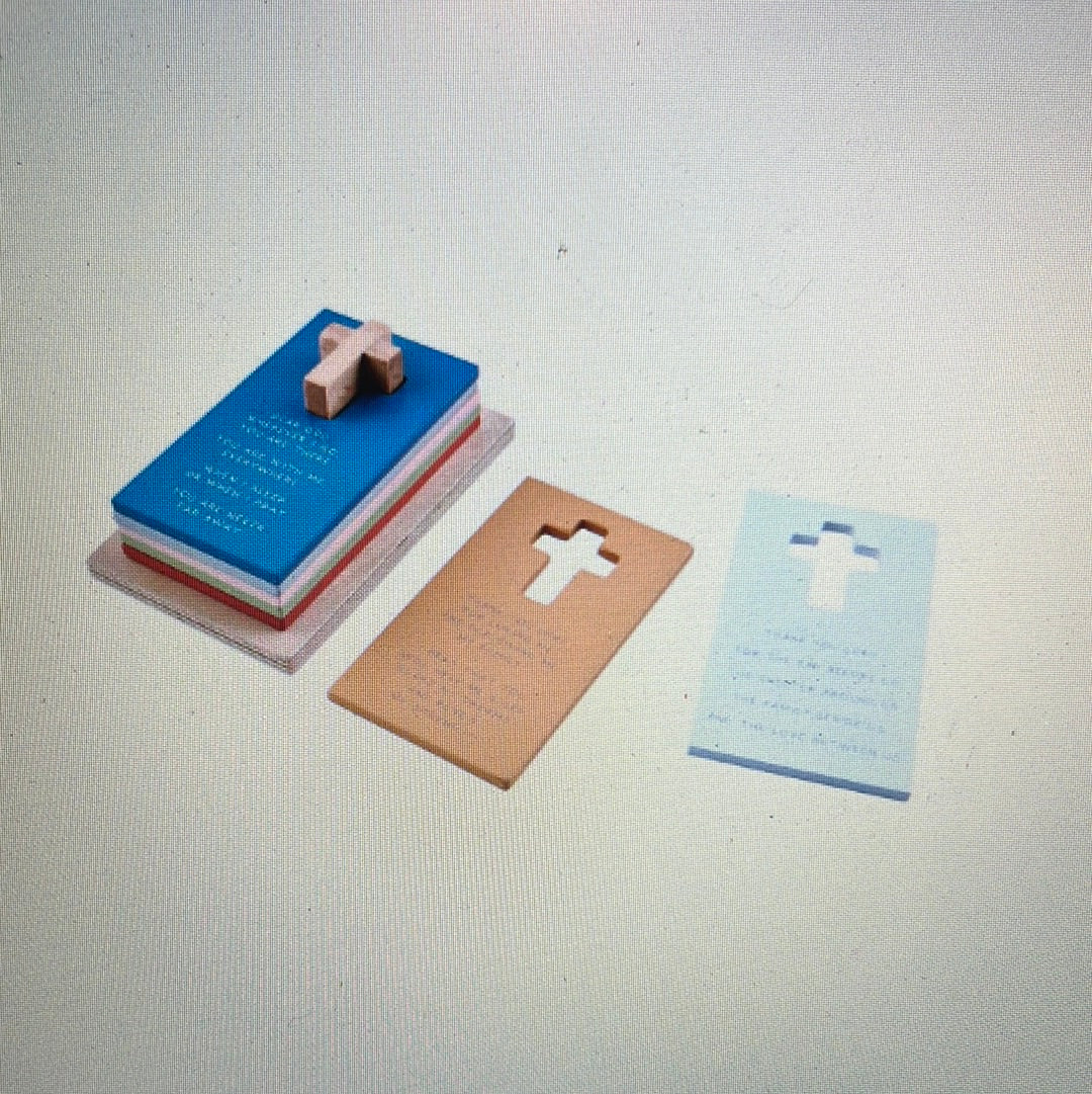 8 -piece set. Multi-color boards printed with sweet children's' prayers store and stack on cross post. Choose a different one every night to learn them all.