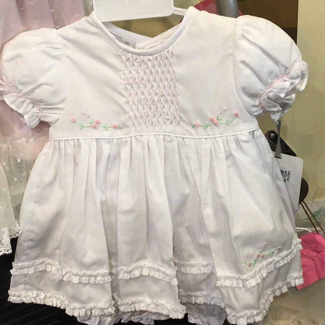 White Honeycomb Smocked Ruffle Dress w/ Panty